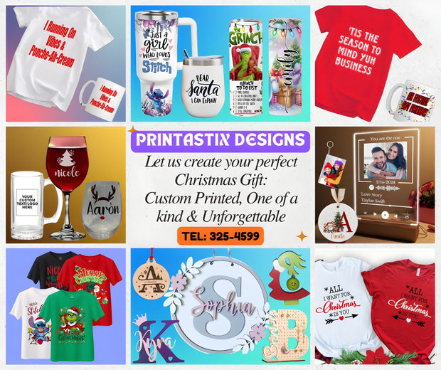 Please send us your design, name, initials, or other personalization details via WhatsApp or email, along with your order number, so we can create your custom item exactly how you want it.WhatsApp: 868-326-2888